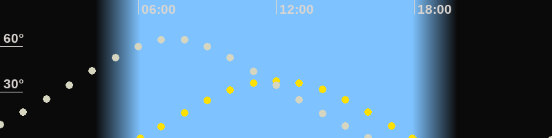 | Höchster Stand (Kulmination) | 07:30 Uhr (h=65.1°) |