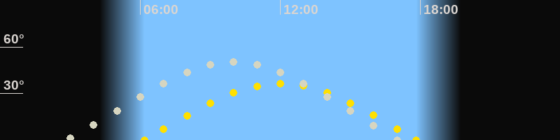 | Höchster Sonnenstand (Kulmination) | 12:00 Uhr (h = 36.4°) |