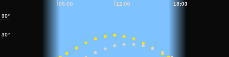| Sonnenaufgang | 06:18 Uhr im Osten (αAz = 96.7°) |