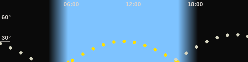 | Höchster Sonnenstand (Kulmination) | 11:55 Uhr (h = 30.3°) |