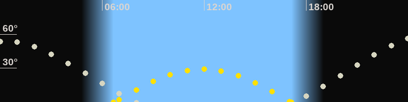 | Höchster Sonnenstand (Kulmination) | 11:55 Uhr (h = 29.2°) |
