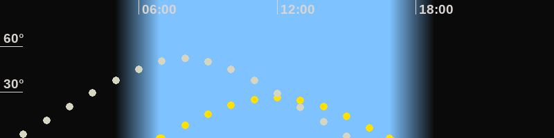 | Höchster Sonnenstand (Kulmination) | 11:54 Uhr (h = 26.4°) |