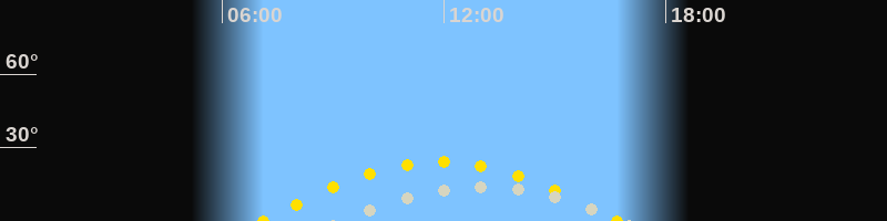 | Höchster Sonnenstand (Kulmination) | 11:53 Uhr (h = 24.2°) |