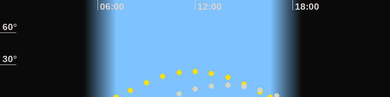 | Höchster Sonnenstand (Kulmination) | 11:53 Uhr (h = 23.8°) |