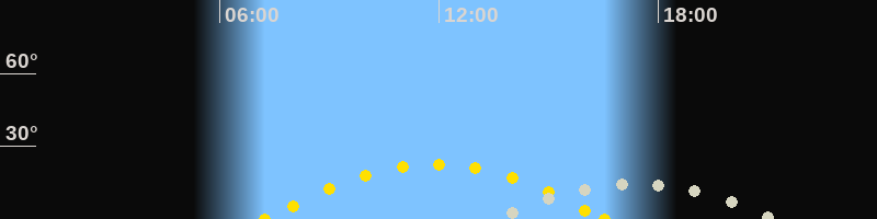 | Sonnenaufgang | 07:14 Uhr im Südosten (αAz = 116°) |