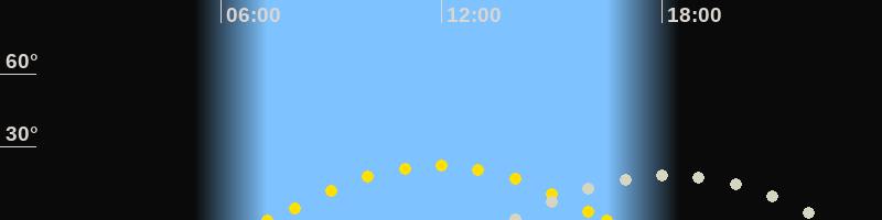 | Sonnenuntergang | 16:30 Uhr im Südwesten (αAz = 243.4°) |
