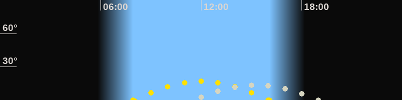 | Höchster Sonnenstand (Kulmination) | 12:00 Uhr (h = 16.9°) |