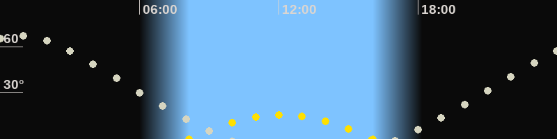 | Höchster Sonnenstand (Kulmination) | 12:06 Uhr (h = 15.9°) |