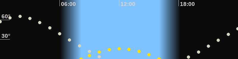 Höchster Sonnenstand (Kulmination)12:06 Uhr (h = 15.9°)
