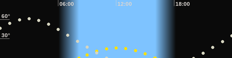 | Höchster Sonnenstand (Kulmination) | 12:07 Uhr (h = 15.9°) |