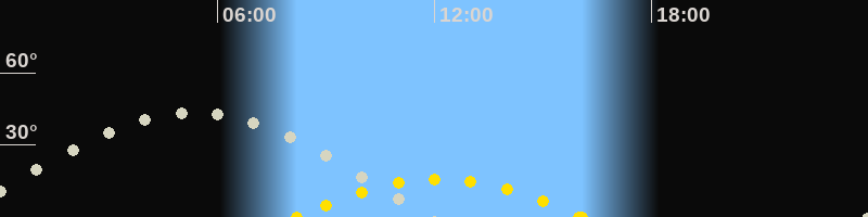 | Höchster Sonnenstand (Kulmination) | 12:08 Uhr (h = 15.8°) |