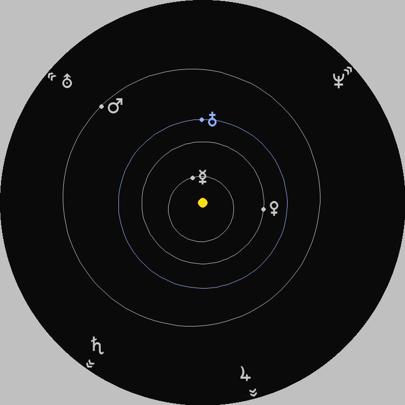 | Beobachtbarkeit der Planeten 22.12.2043 | ||
