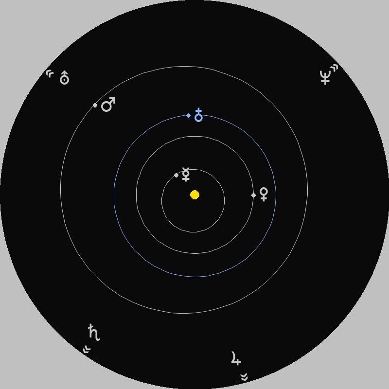 | Beobachtbarkeit der Planeten 26.12.2043 | ||
