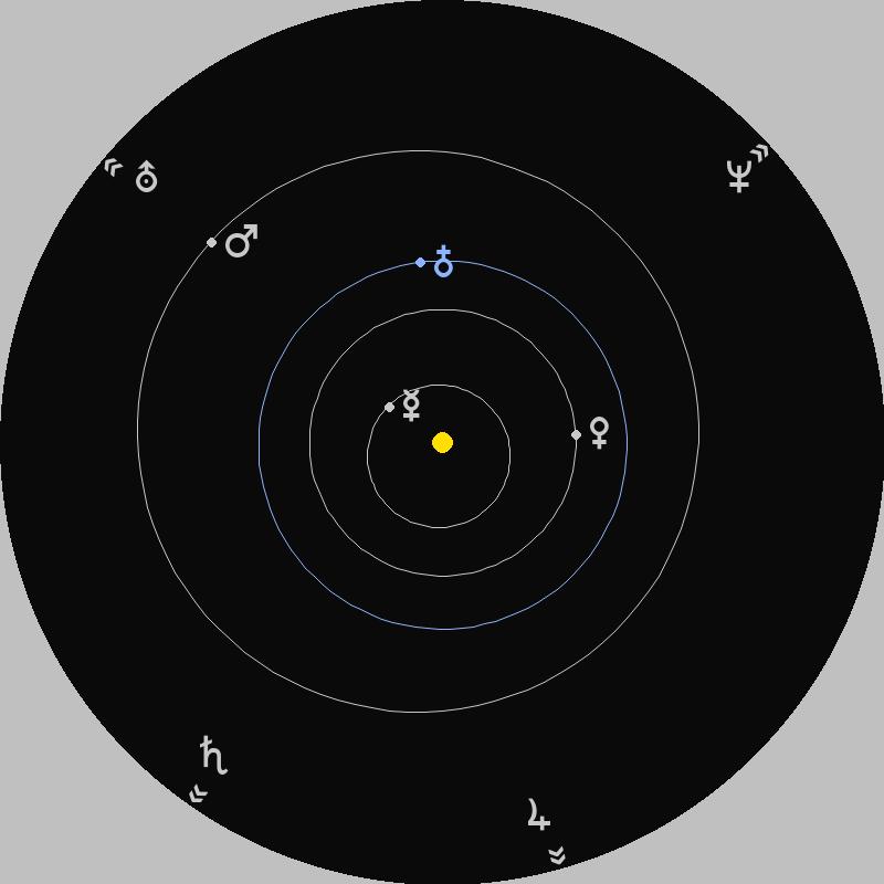 | Beobachtbarkeit der Planeten 28.12.2043 | ||