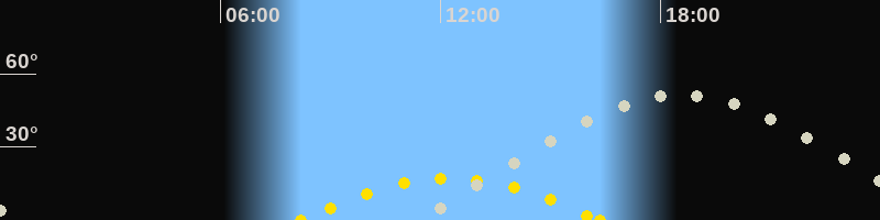 | Höchster Sonnenstand (Kulmination) | 12:16 Uhr (h = 17°) |