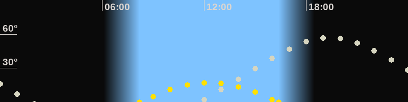| Höchster Sonnenstand (Kulmination) | 12:17 Uhr (h = 17.2°) |
