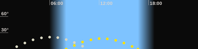 | Höchster Stand (Kulmination) | 06:08 Uhr (h=22.2°) |