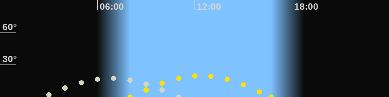 | Höchster Sonnenstand (Kulmination) | 12:21 Uhr (h = 19.8°) |