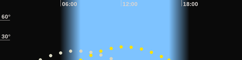 | Höchster Sonnenstand (Kulmination) | 12:22 Uhr (h = 20.1°) |