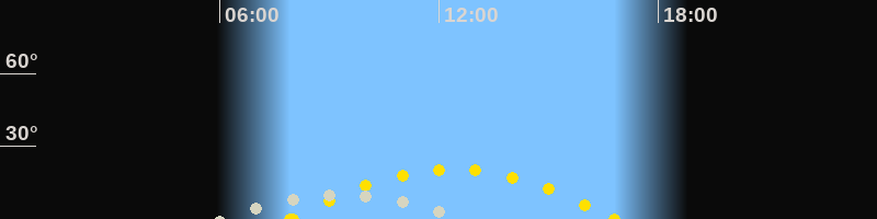 | Höchster Sonnenstand (Kulmination) | 12:22 Uhr (h = 20.6°) |
