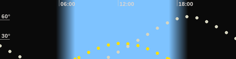 | Höchster Sonnenstand (Kulmination) | 12:24 Uhr (h = 24°) |
