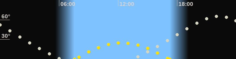Höchster Sonnenstand (Kulmination)12:24 Uhr (h = 24.9°)