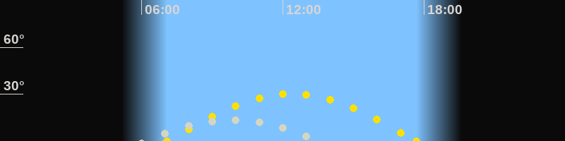 Höchster Sonnenstand (Kulmination)12:23 Uhr (h = 30.2°)