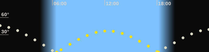 Höchster Sonnenstand (Kulmination)12:19 Uhr (h = 36.7°)