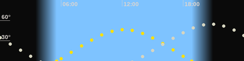 | Höchster Sonnenstand (Kulmination) | 12:12 Uhr (h = 46.5°) |