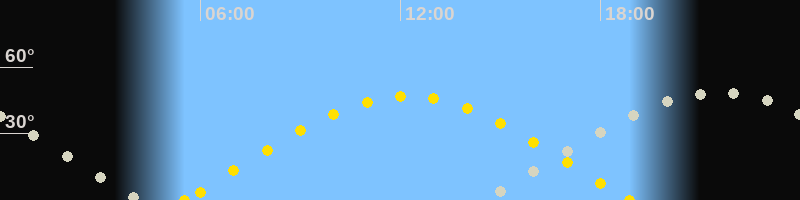 Höchster Sonnenstand (Kulmination)12:11 Uhr (h = 46.8°)