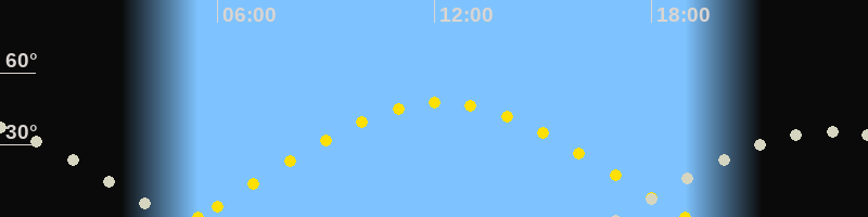 | Sonnenaufgang | 05:27 Uhr im Osten (αAz = 76.3°) |