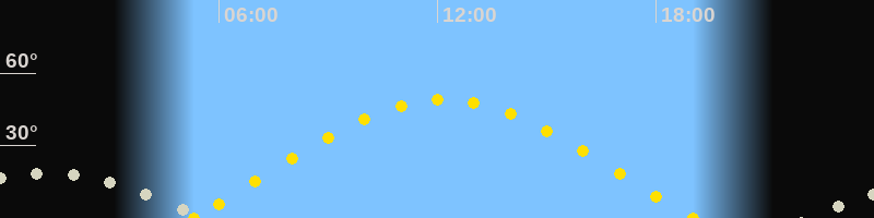 | Sonnenaufgang | 05:18 Uhr im Osten (αAz = 74°) |