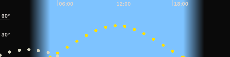 | Sonnenaufgang | 05:14 Uhr im Osten (αAz = 72.8°) |