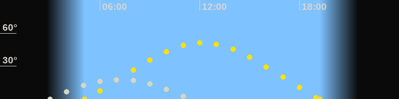 | Sonnenaufgang | 05:04 Uhr im Osten (αAz = 70°) |