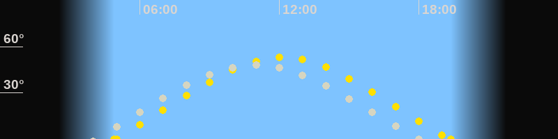 | Sonnenaufgang | 04:54 Uhr im Nordosten (αAz = 67.3°) |