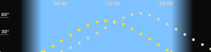 | Höchster Sonnenstand (Kulmination) | 12:07 Uhr (h = 54.6°) |