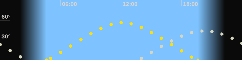 | Höchster Sonnenstand (Kulmination) | 12:06 Uhr (h = 56.1°) |