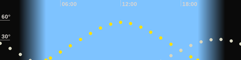 | Höchster Sonnenstand (Kulmination) | 12:06 Uhr (h = 56.6°) |