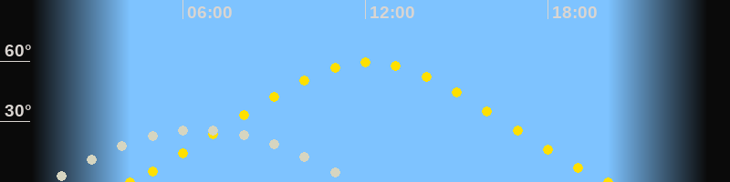 | Höchster Sonnenstand (Kulmination) | 12:06 Uhr (h = 59.4°) |