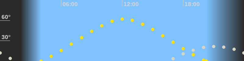 | Höchster Sonnenstand (Kulmination) | 12:09 Uhr (h = 62°) |