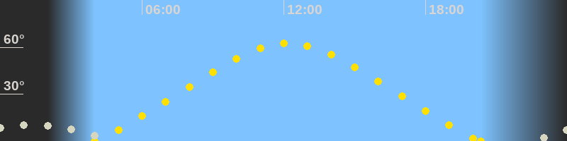 | Höchster Sonnenstand (Kulmination) | 12:10 Uhr (h = 62.5°) |