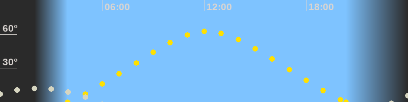 | Höchster Sonnenstand (Kulmination) | 12:10 Uhr (h = 62.5°) |