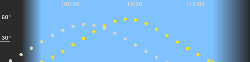 Höchster Sonnenstand (Kulmination)12:12 Uhr (h = 62.7°)