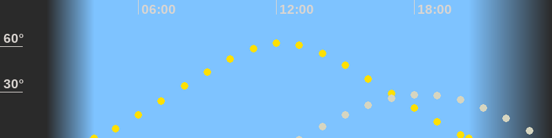 | Höchster Stand (Kulmination) | 18:25 Uhr (h=28.9°) |