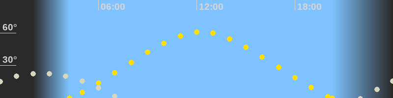 | Höchster Sonnenstand (Kulmination) | 12:16 Uhr (h = 60.9°) |