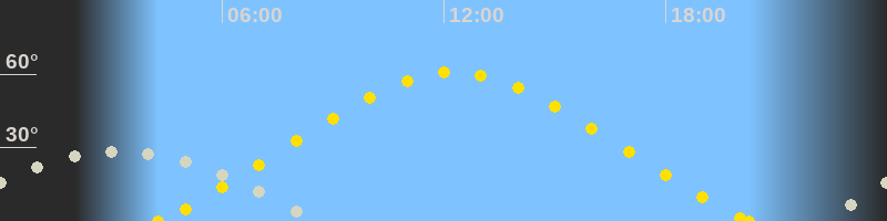 | Höchster Sonnenstand (Kulmination) | 12:16 Uhr (h = 60.8°) |