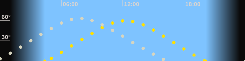 Höchster Sonnenstand (Kulmination)12:16 Uhr (h = 59.7°)