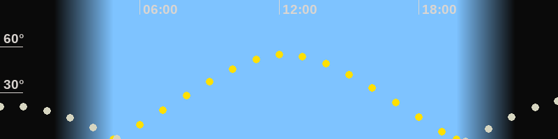 | Höchster Sonnenstand (Kulmination) | 12:15 Uhr (h = 54.8°) |