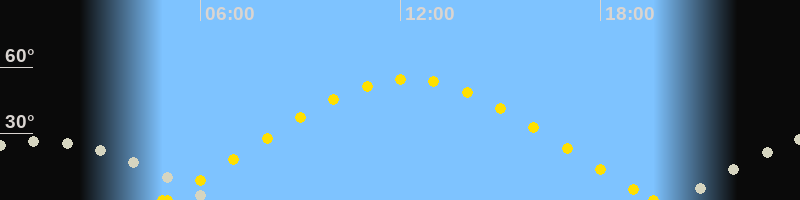 | Höchster Sonnenstand (Kulmination) | 12:15 Uhr (h = 54.5°) |