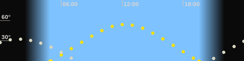 | Höchster Sonnenstand (Kulmination) | 12:15 Uhr (h = 54.2°) |